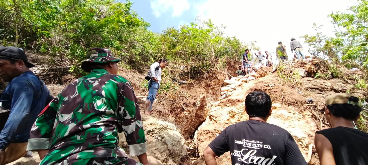 anggota Kodim 162/Loteng bersama aparat Desa dan masyarakat melakukan penutupan tambang ilegal di gunung Dundang Desa Kuta